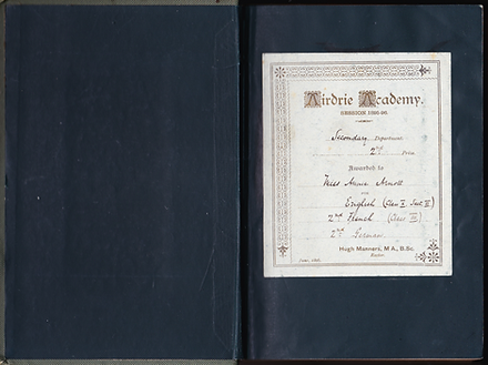 A gentleman handed in this beautiful volume of poetry that was gifted to Annie Arnott in the first year of her studies at Airdrie Academy in session 1895-96. He discovered it in a local bookstore.